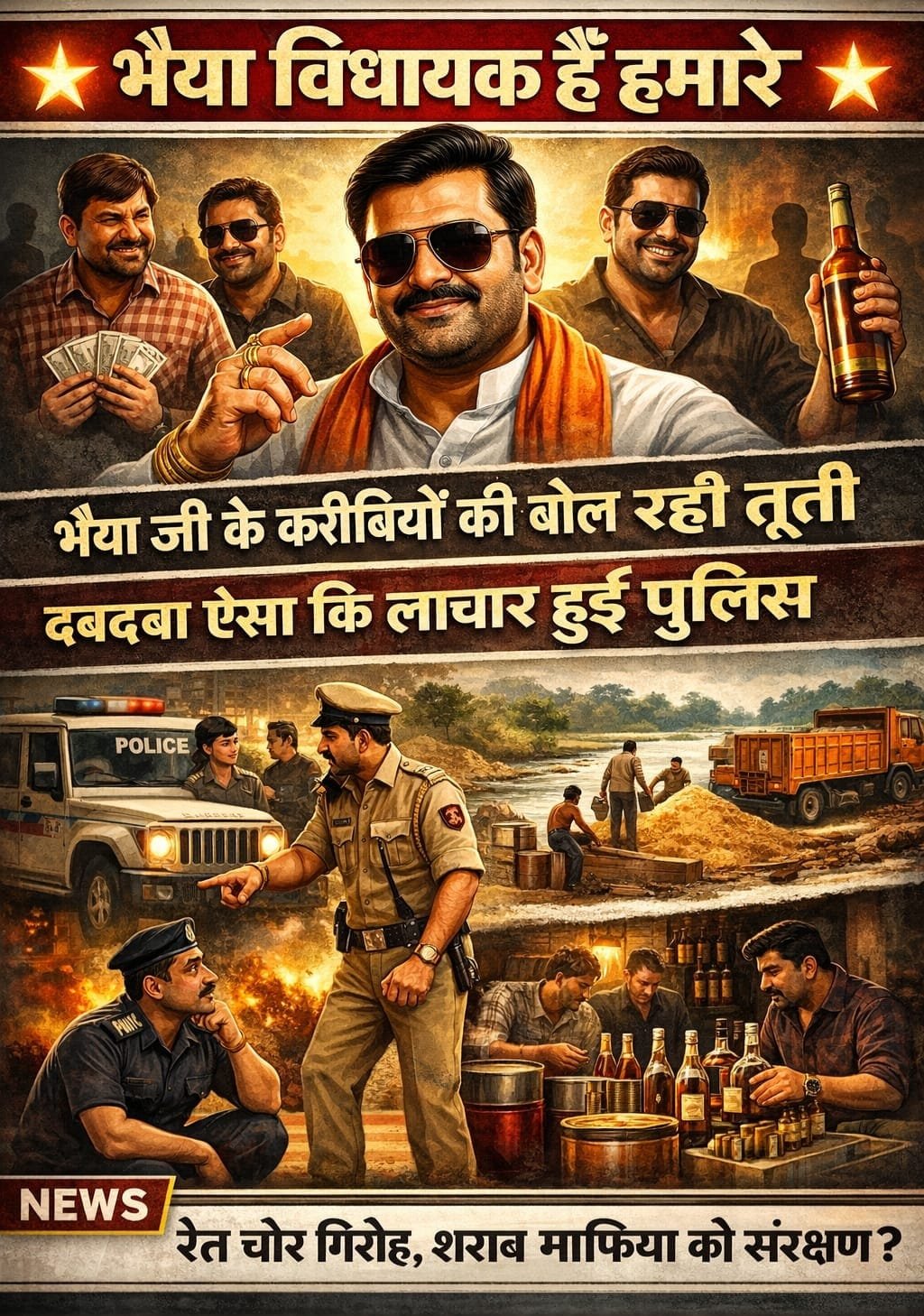 🌟भैया विधायक है हमारे🌟 दम तोड़ती कानून व्यवस्था, आमजन की टूटती वर्दी से उम्मीद, भैया जी के करीबियों का बोलबाला, अबकी बंटाधार न करवा दें चहेते, जरा संभलकर भैया जी, जनता सब जानती है….