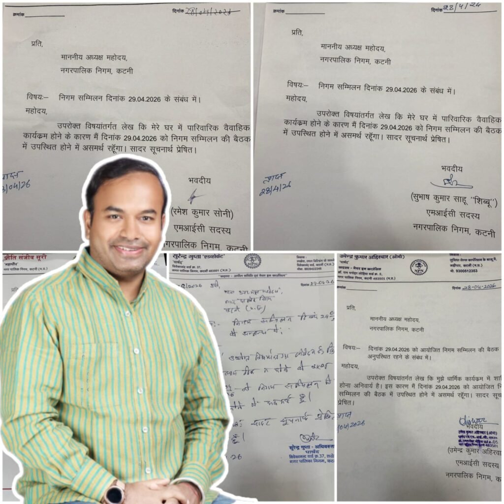 कटनी। नगर पालिक निगम कटनी की परिषद बैठक कल परिषद हॉल में आयोजित होनी है, लेकिन बैठक से पहले ही सियासी हलचल तेज हो गई है। जानकारी के अनुसार महापौर प्रीति संजीव सूरी सहित पूरी एमआईसी (मेयर इन काउंसिल) ने बैठक में अनुपस्थित रहने के लिए अग्रिम आवेदन दे दिया है।