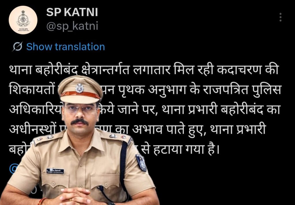 рдХрдЯрдиреАред рдерд╛рдиреЗ рдореЗрдВ рдкрджрд╕реНрде рдХрд░реНрдордЪрд╛рд░рд┐рдпреЛрдВ рдХреЗ рдКрдкрд░ рдкрд░реНрдпрд╛рдкреНрдд рдирд┐рдпрдВрддреНрд░рдг рди рд╣реЛрдиреЗ рдХреЗ рдХрд╛рд░рдг рдмрд╣реЛрд░реАрдмрдВрдж рдерд╛рдирд╛ рдкреНрд░рднрд╛рд░реА рдЕрдЦрд┐рд▓реЗрд╢ рджрд╣рд┐рдпрд╛ рдХреЛ рд╣рдЯрд╛рдП рдЬрд╛рдиреЗ рдХреА рдЦрдмрд░ рд╕рд╛рдордиреЗ рдЖ рд░рд╣реА рд╣реИред рд╡рд┐рднрд╛рдЧреАрдп рд╕реВрддреНрд░реЛрдВ рдХреЗ рдореБрддрд╛рдмрд┐рдХ рдХрджрд╛рдЪрд░рдг рдХреА рд╢рд┐рдХрд╛рдпрддреЛрдВ рдХреА рдЬрд╛рдВрдЪ рдореЗрдВ рдЬреЛ рддрдереНрдп рд╕рд╛рдордиреЗ рдЖрдП рдЙрд╕рдХреЗ рдЖрдзрд╛рд░ рдкрд░ рдкреБрд▓рд┐рд╕ рдЕрдзреАрдХреНрд╖рдХ рдЕрднрд┐рдирдп рд╡рд┐рд╢реНрд╡рдХрд░реНрдорд╛ рдиреЗ рдерд╛рдирд╛ рдкреНрд░рднрд╛рд░реА рдХреЛ рджрдВрдбрд┐рдд рдХрд░рддреЗ рд╣реБрдП рдЙрдиреНрд╣реЗрдВ рд▓рд╛рдЗрди рд╣рд╛рдЬрд┐рд░ рдХрд░ рджрд┐рдпрд╛ рд╣реИред