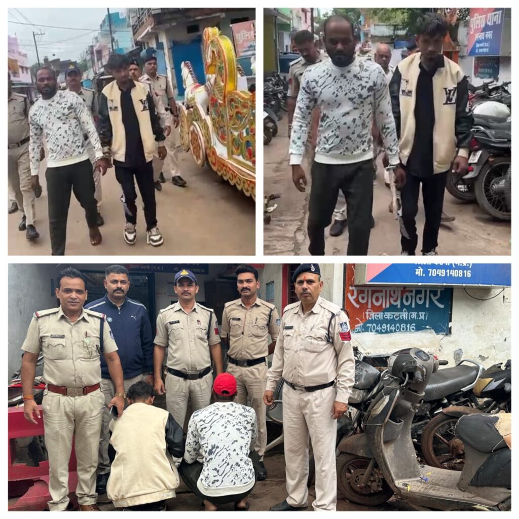 рдХрдЯрдиреАред рд╣рддреНрдпрд╛ рдХреЗ рдЖрд░реЛрдк рдореЗрдВ рд╕рдЬрд╛рдпрд╛рдлреНрддрд╛ рдХреБрдЦреНрдпрд╛рдд рдЖрд░реЛрдкреА рд╣рд╕рди рдЕрд▓реА рдЙрд░реНрдл рдЫреЛрдЯрд╛ рдмрд╛рдмрд░ рдПрд╡рдВ рдЙрд╕рдХреЗ рд╕рд╛рдереА рдХреЛ рд░рдВрдЧрдирд╛рде рдирдЧрд░ рдкреБрд▓рд┐рд╕ рдиреЗ рдЕрд╡реИрдз рд╡рд╕реВрд▓реА рдХрд░рдиреЗ рдкрд░ рдЧрд┐рд░рдлреНрддрд╛рд░ рдХрд┐рдпрд╛ рд╣реИред рдмрддрд╛рдпрд╛ рдЬрд╛рддрд╛ рд╣реИ рдХрд┐ рдЖрд░реЛрдкреА рдЬрдорд╛рдирдд рдкрд░ рдЬреЗрд▓ рд╕реЗ рдмрд╛рд╣рд░ рдЖрдиреЗ рдХреЗ рдмрд╛рдж рдПрдХ рдмрд╛рд░ рдлрд┐рд░ рд╕реЗ рдЖрдкрд░рд╛рдзрд┐рдХ рдЧрддрд┐рд╡рд┐рдзрд┐рдпреЛрдВ рдХреЛ рд╕рдВрдЪрд╛рд▓рд┐рдд рдХрд░рдиреЗ рд▓рдЧрд╛ рдерд╛ред рдлрд┐рд░ рд╕реЗ рд╕рдХреНрд░рд┐рдп рд╣реЛ рд░рд╣реЗ рдмрджрдорд╛рд╢ рдХреЛ рд╕рдмрдХ рд╕рд┐рдЦрд╛рдиреЗ рдХреЗ рдЙрджреНрджреЗрд╢реНрдп рд╕реЗ рд░рдВрдЧрдирд╛рде рдирдЧрд░ рдкреБрд▓рд┐рд╕ рдиреЗ рдмрд╛рдЬрд╛рд░ рдореЗрдВ рдЙрд╕реЗ рдкреИрджрд▓ рдШреБрдорд╛рдпрд╛ред рдЗрд╕ рджреМрд░рд╛рди рдкрдХрдбрд╝реЗ рдЧрдП рджреЛрдиреЛрдВ рдмрджрдорд╛рд╢ рдЪреАрдЦ рдЪреАрдЦ рдХрд░ рдХрд╣ рд░рд╣реЗ рдереЗ рдХрд┐ рдкреБрд▓рд┐рд╕ рд╣рдорд╛рд░реА рдмрд╛рдк рд╣реИ рдЕрдкрд░рд╛рдз рдХрд░рдирд╛ рдкрд╛рдк рд╣реИред