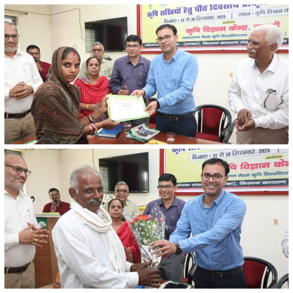 कटनी। कृषि विज्ञान केन्द्र पिपरौंध में आयोजित कृषि सखियों के पांच दिवसीय प्रशिक्षण के समापन कार्यक्रम में कलेक्टर आशीष तिवारी ने कहा कि कृषि सखियां किसानों और खेतों तक प्राकृतिक खेती की तकनीकों को पहुंचाकर, अपने गांव और समाज में प्राकृतिक खेती की अग्रदूत बनें। उन्होंने कहा कि प्राकृतिक खेती से उत्पादित जैविक फसलों, सब्जियों आदि की बाजार में काफी मांग होने से इनकी कीमत भी अच्छी मिलती है। कलेक्टर श्री तिवारी ने रासायनिक उर्वरकों के खेती में बढ़ते प्रयोग से धरती की घटती उर्वरा क्षमता और उत्पादित फसलों में केमिकल तत्वों की वजह से होने वाले दुष्प्रभावों पर चिंता व्यक्त करते हुये कलेक्टर ने कहा कि ऐसे समय में प्राकृतिक खेती कहीं अधिक प्रासंगिक है। उन्होंने कृषि सखियों से संवाद करते हुये पशुपालन, प्राकृतिक खेती कर फसल और सब्जी-भाजी उगाने वाली कृषि सखियों की हौसलाअफजाई किया। उन्होंने कहा कि प्राकृतिक खेती की शुरूआत में उत्पादकता कम होती है, इसलिए अपनी जमीन के एक भाग में प्राकृतिक खेती करें। फसलों में जीवामृत, ब्रहास्त्र जैसी जैविक दवाइयों का उपयोग करें। कलेक्टर ने कृषि सखियों के आग्रह पर मनरेगा योजना से वर्मी पिट बनवाने की बात कही।