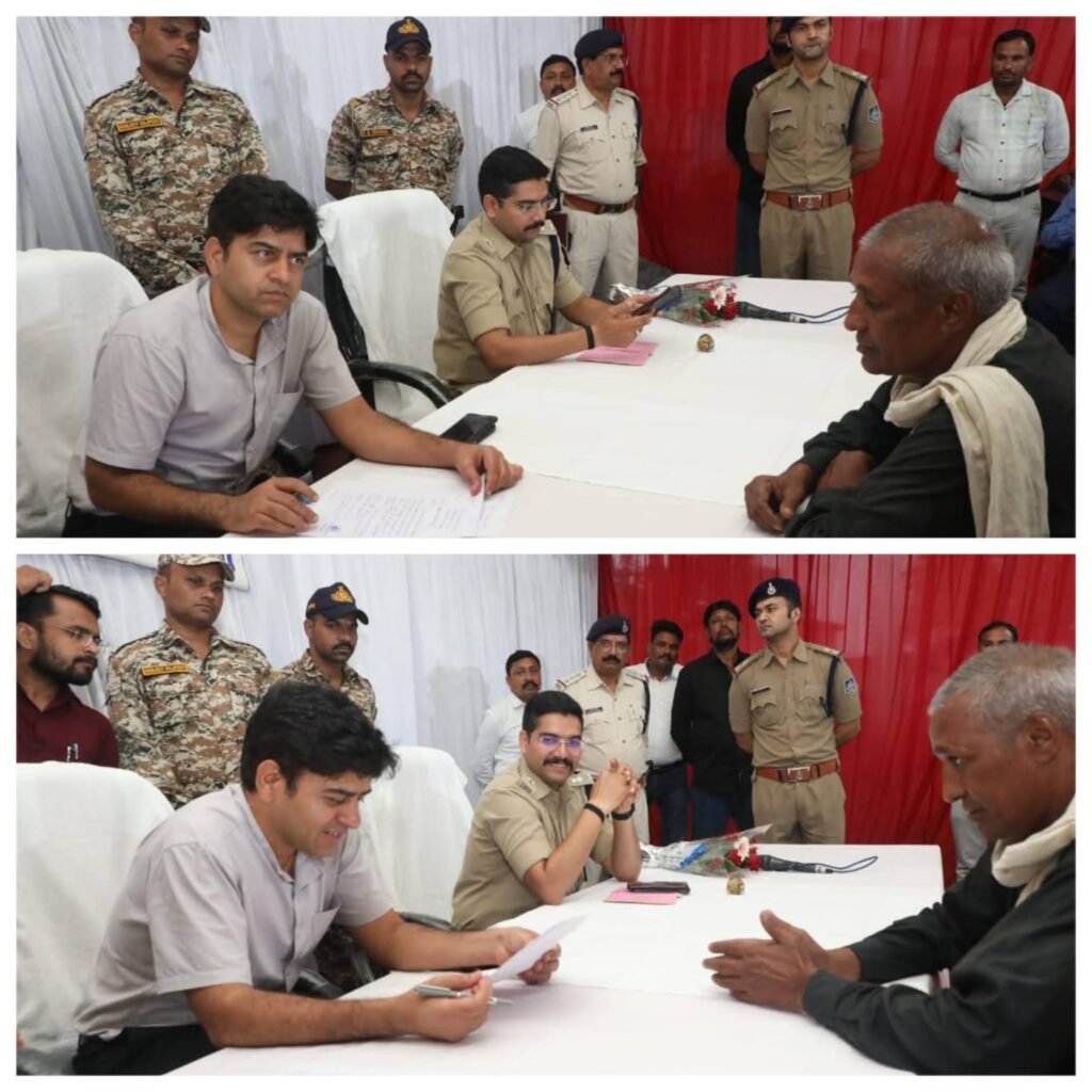 झमाझम बारिश के बीच कलेक्टर, एसपी ने घुघरा में सुनीं ग्रामीणों की समस्याएं, शासकीय जमीनों पर हो रहा कब्जा, बोले ग्रामीण