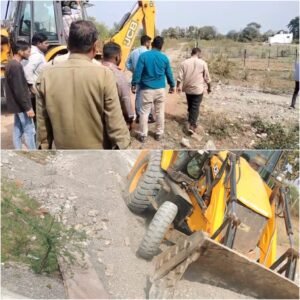 निगम का अतिक्रमण अमला सक्रिय, बजरंग कॉलोनी में अवैध कॉलोनी की हटाई गई संरचना, अमित साहू के द्वारा की जा रही थी अवैध प्लाटिंग कटनी।