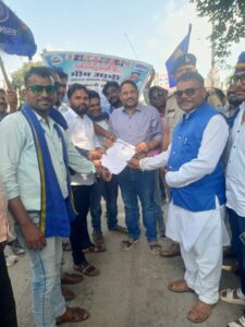भीम आर्मी ने अनिल मिश्रा का पुतला फूंका, सख्त कार्रवाई की मांग