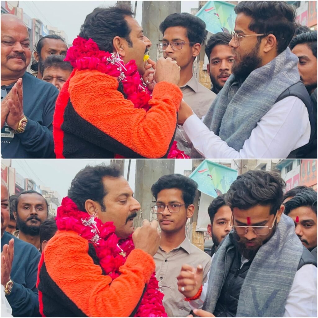 गर्ग चौराहे में धूमधाम से मनाया गया निगम अध्यक्ष मनीष पाठक का जन्मदिन, आतिशबाजी ढोल नगाड़ों के बीच काटा गया केक