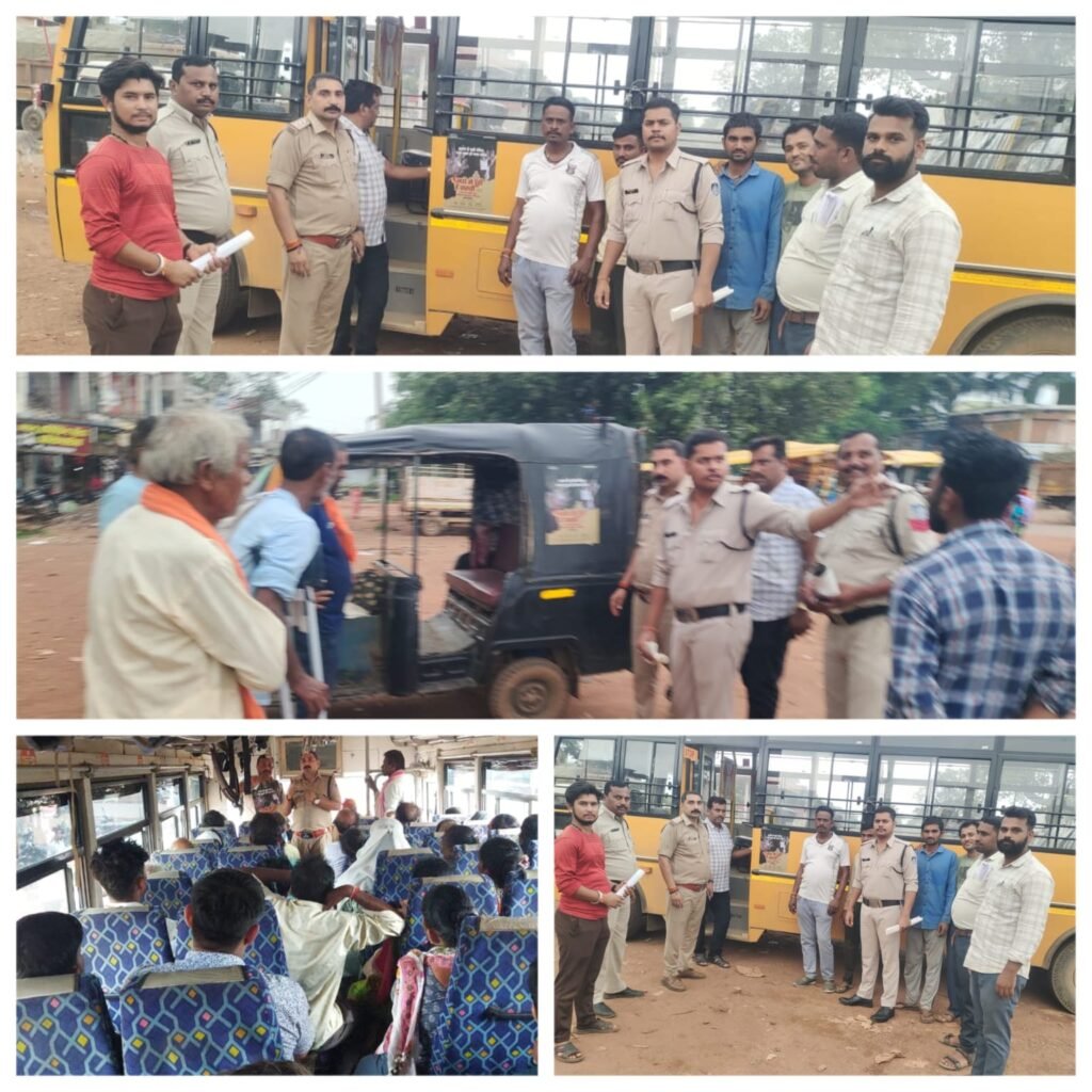 इस दौरान प्राइवेट बसों, स्कूल बसों एवं सवारी ऑटो के यात्रियों के बीच, उपस्थित होकर उन्हें नशे से दूरी है जरूरी विषय को समझाया साथ ही नशे से होने वाली आर्थिक, शारीरिक, मानसिक व सामाजिक नुकसान को विस्तृत रूप से बताया। नशे से दैनिक जीवन में आने वाली परेशानी को समझाया गया एवं नशे से दूरी है जरूरी के पंपलेट बसों में चिपकाए गए। जिसमें यात्रियों ने बढ़ चढ़ कर भाग लिया। आसपास के लोगो ने भी इस नशा मुक्ति जागरूक अभियान का स्वागत करते हुए शपथ ली कि ” न ही मैं नशा करूंगा न ही करने दूंगा, इससे अपने घर, परिवार, कुटुंब, समाज को बचाऊंगा। इसके साथ नशे से दूर रहने हेतु प्रेरणादाई विडियोज भी दिखाए गए, जिसमें कुल 200 यात्री एवं अन्य लोग उपस्थित रहे।