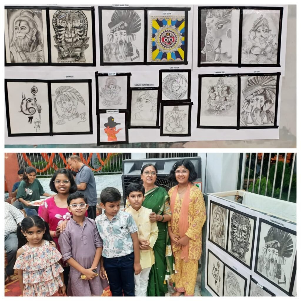 गणेश उत्सव पर श्री गणेश सिद्धेश्वर महादेव मंदिर में हुई ड्राइंग प्रतियोगिता, बच्चों ने कागज पर उकेरी बप्पा की आकृति