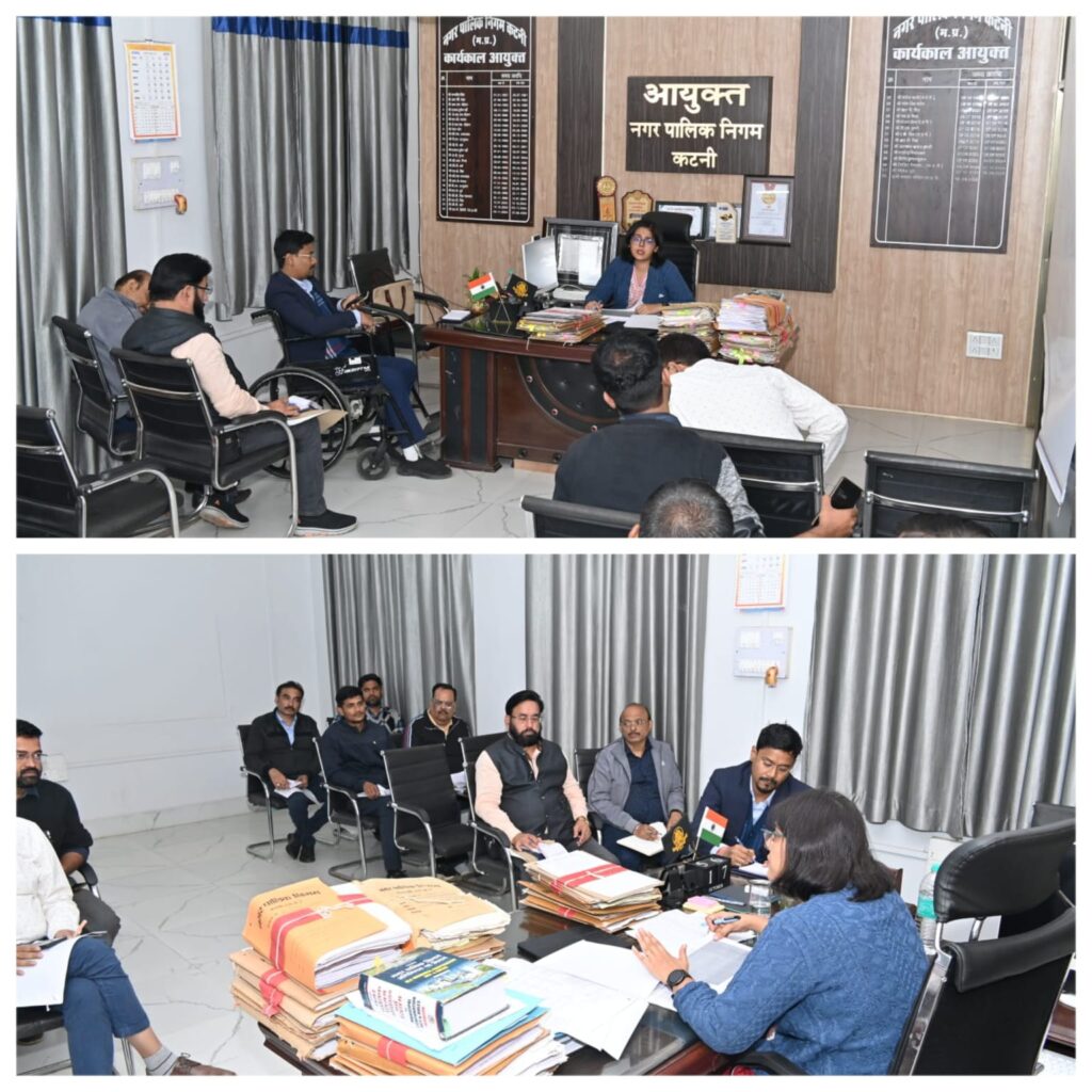 कटनी। सोमवार को नगर निगम कार्यालय में आयोजित समय-सीमा प्रकरणों की समीक्षा बैठक के दौरान निगमायुक्त सुश्री तपस्या परिहार ने सीएम हेल्पलाइन के लंबित प्रकरणों सहित विभागीय कार्यों एवं योजनाओं के साथ ही निगम के माध्यम से कराए जा रहे विभिन्न विकास कार्यों की प्रगति की समीक्षा करते हुए संबंधित अधिकारियों को आवश्यक दिशा-निर्देश दिए। बैठक में उपायुक्त शैलेष गुप्ता, प्रभारी कार्यपालन यंत्री सुधीर मिश्रा, असित खरे, अंशुमान सिंह, राजस्व अधिकारी जागेश्वर पाठक, स्वास्थ्य अधिकारी संजय सोनी, योजना प्रभारी रविशंकर पाण्डेय, सनद विश्वकर्मा कार्यालय अधीक्षक नागेन्द्र पटेल सहित विभागीय अधिकारियों की उपस्थिति रही।
