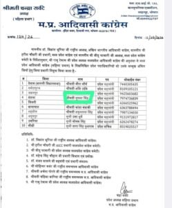 म.प्र. आदिवासी कांग्रेस की प्रदेश अध्यक्ष श्रीमती चन्द्रा सर्वटे ने अखिल भारतीय आदिवासी कांग्रेस के राष्ट्रीय अध्यक्ष डॉ. विक्रांत भूरिया, प्रभारी मध्य प्रदेश कांग्रेस हरीश चौधरी एवं जीतू पटवारी अध्यक्ष मध्य प्रदेश कांग्रेस कमेटी के निर्देशानुसार, रामू टेकाम प्रदेश अध्यक्ष मध्यप्रदेश आदिवासी कांग्रेस की अनुशंसा से मध्य प्रदेश आदिवासी कांग्रेस (महिला प्रभाग) की प्रदेश महामंत्री श्रीमती सुषमा सिंह को मंडला जिले का जिला प्रभारी नियुक्त किया है। चुनाओ की तैयारी को देखते हुए यह नियुक्ति बेहद अहम मानी जा रही है। पुणे मंडला जिले का प्रभारी बनाए जाने पर कार्यकर्ताओं में हर्ष है। उनके समर्थकों एवं पार्टी के कार्यकर्ताओं ने उन्हें शुभकामनाएं प्रेषित की है।