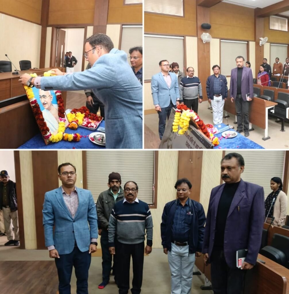 कलेक्टर आशीष तिवारी ने राष्ट्रपिता महात्मा गांधी के तैल चित्र पर माल्यार्पण किया और पुष्प अर्पित कर उन्हें भावभीनी श्रद्धांजलि दी। इसके ठीक बाद प्रातः 11 बजे सायरन बजने पर दो मिनट का मौन रखा गया। श्रद्धांजलि कार्यक्रम में डिप्टी कलेक्टर प्रदीप मिश्रा, ज्योति लिल्हारे, विंकी सिंहमारे उईके और जिला पंचायत के अतिरिक्त मुख्य कार्यपालन अधिकारी अनुराग मोदी सहित कलेक्ट्रेट कार्यालय के विभिन्न विभागों के जिला अधिकारी एवं कर्मचारियों ने भी सामूहिक रूप से मौन रखकर देश के बलिदानियों को याद किया।