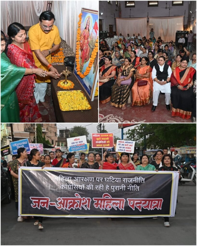 सम्मेलन के बाद महिलाओं ने काली पट्टी बांधकर विरोध दर्ज कराया और जन आक्रोश महिला पदयात्रा निकाली। इस दौरान महिलाओं ने विपक्ष के खिलाफ जमकर नारेबाजी भी की। इस अवसर पर महापौर प्रीति संजीव सूरी, सभी महिला एमआईसी सदस्य, पार्षदगण सहित अन्य जनप्रतिनिधियों की उपस्थिति रही। साथ ही बड़ी संख्या में मातृशक्ति ने सहभागिता कर कार्यक्रम को प्रभावशाली बनाया।