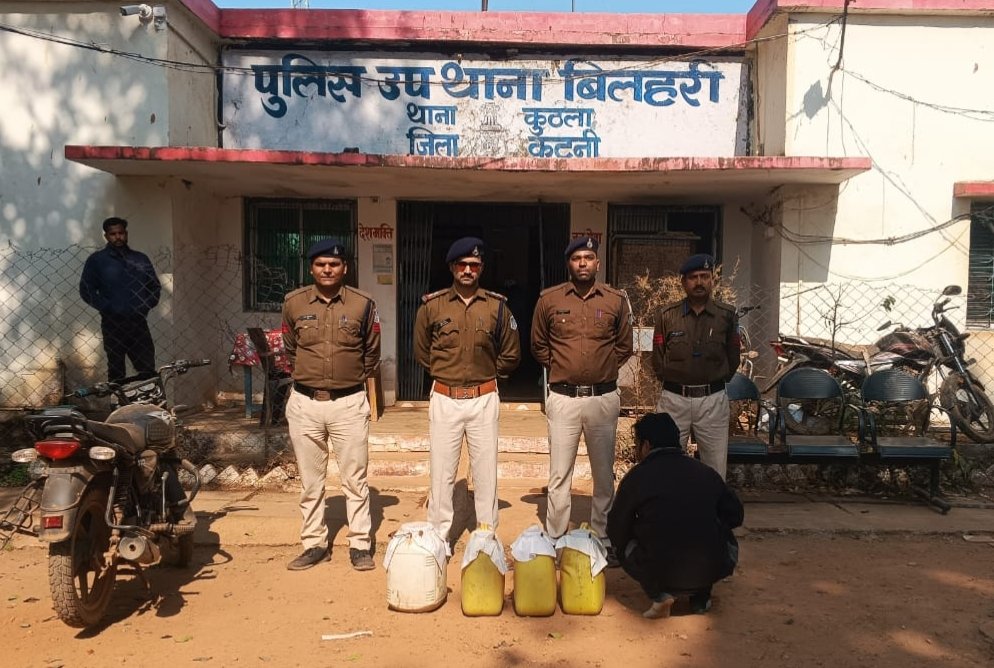 भारी मात्रा में कच्ची शराब लिए पकड़ा गया बदमाश, बिलहरी पुलिस ने घेराबंदी कर आरोपी को दबोचा