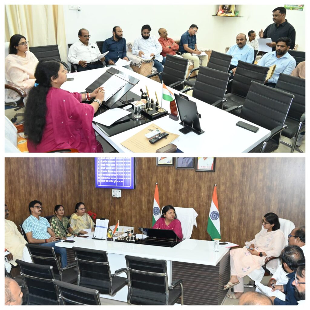 बैठक के दौरान महापौर श्रीमती प्रीति संजीव सूरी की अनुमति से नगर की सुगम आवागमन हेतु विभिन्न मार्गो के गढडों की फिलिंग, आगामी शीत ऋतु हेतु अलाव व्यवस्था, अधोसंरचा सहित विभिन्न विकास एवं निर्माण कार्यो, सफाई व्यवस्था, सीवर लाईन विस्तार उपरांत सड़कों के रेस्टोरेशन कार्य सहित स्वसहायता समूहों की जानकारी, आवारा मवेशियों के विचरण पर नियंत्रण सहित अन्य महत्वपूर्ण विषयों पर विस्तार पूर्वक चर्चा की गई। जिसपर निगमायुक्त सुश्री तपस्या परिहार द्वारा संबंधित विभागीय अधिकारियों को इन विषयों पर त्वरित कार्यवाही करनें हेतु आवश्यक दिशा-निर्देश दिए गए। बैठक के दौरान प्रभारी कार्यपालन यंत्री सुधीर मिश्रा, राजस्व अधिकारी जागेश्वर पाठक, स्वास्थ्य अधिकारी संजय सोनी, सहायक लेखापाल श्रीकांत तिवारी, सिटी मैनेजर एनयूएलएम यश रजक, निगम सचिव पारसनाथ प्रजापति, गिरिराज पाठक सहित अन्य विभागीय अधिकारी कर्मचारी मौजूद रहे।