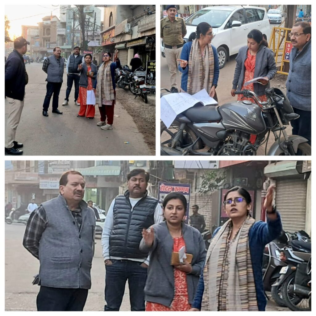 जगन्नाथ चौक से घंटाघर मार्ग के पोल शिफ्टिंग कार्य के निरीक्षण के दौरान ओम मेडिकल स्टोर के सामने बिना ढके भवन निर्माण कार्य होना पाये जाने तथा निर्माण सामग्री एवं धूल मार्ग में फैलने पर निगमायुक्त तपस्या परिहार ने संबंधित भवन स्वामियों को नोटिस जारी करने तथा महाकाल गली के सामने मार्ग के किनारे कटे हुए बालों का ढेर पाए जानें पर संबंधित स्थानीय सैलून संचालक को नोटिस जारी करने के निर्देश दिए गए।