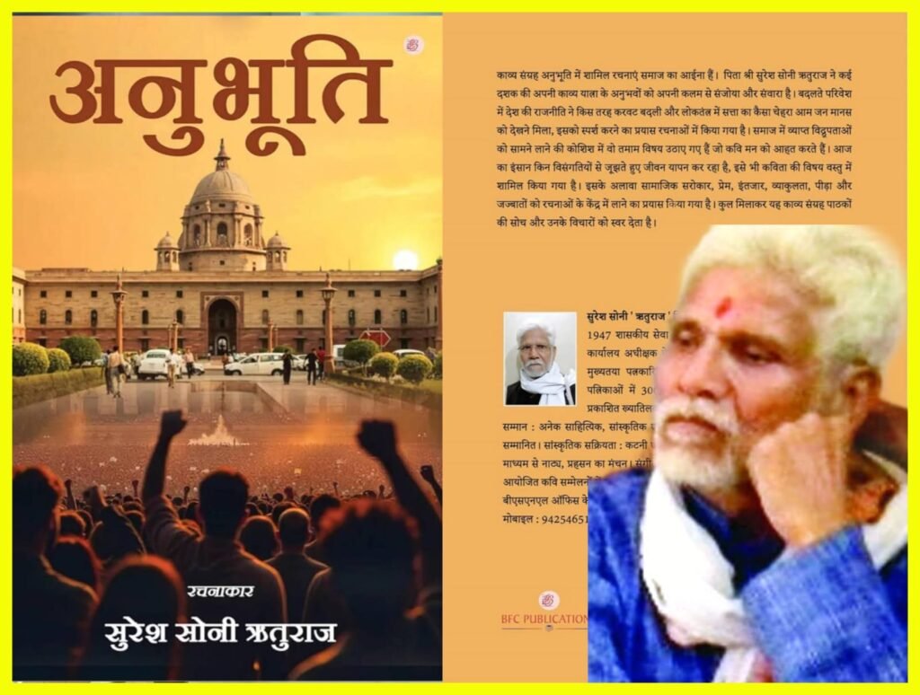 “काव्य संग्रह अनुभूति में शामिल रचनाएं समाज का आईना हैं। वरिष्ठ पत्रकार और कवि सुरेश सोनी ऋतुराज ने कई दशक की अपनी काव्य यात्रा के अनुभवों को अपनी कलम से संजोया और संवारा है। बदलते परिवेश में देश की राजनीति ने किस तरह करवट बदली और लोकतंत्र में सत्ता का कैसा चेहरा आम जन मानस को देखने मिला, इसको स्पर्श करने का प्रयास रचनाओं में किया गया है। समाज में व्याप्त विद्रूपताओं को सामने लाने की कोशिश में वो तमाम विषय उठाए गए हैं जो कवि मन को आहत करते हैं। आज का इंसान किन विसंगतियों से जूझते हुए जीवन यापन कर रहा है, इसे भी कविता की विषय वस्तु में शामिल किया गया है। इसके अलावा सामाजिक सरोकार, प्रेम, इंतजार, व्याकुलता, पीड़ा और जज्बातों को रचनाओं के केंद्र में लाने का प्रयास किया गया है। कुल मिलाकर यह काव्य संग्रह पाठकों की सोच और उनके विचारों को स्वर देता है।
