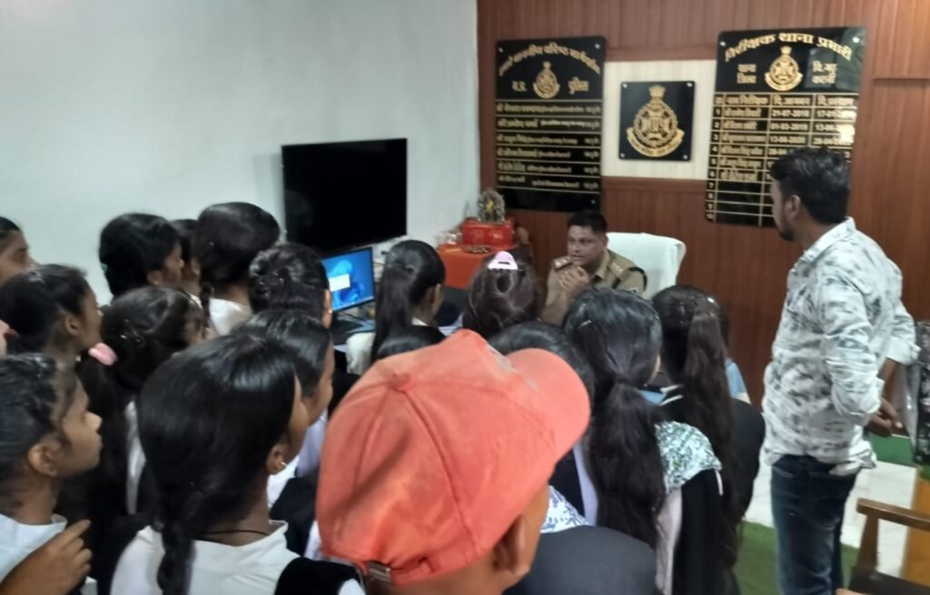 कटनी। पुलिस मुख्यालय भोपाल द्वारा सामुदायिक पुलिसिंग के अंतर्गत संचालित बाल मित्र योजना के तहत छात्र-छात्राओं को पुलिस कार्यप्रणाली से परिचित कराने एवं अपराधों से बचाव हेतु जागरूक करने के प्रयास किया जा रहे हैं। इसी कड़ी में पुलिस अधीक्षक कटनी अभिनव विश्वकर्मा के निर्देशन, अतिरिक्त पुलिस अधीक्षक डॉ. संतोष डहेरिया एवं एसडीओपी विजयराघवगढ़ वीरेंद्र धारवे के मार्गदर्शन में थाना विजयराघवगढ़ प्रभारी निरीक्षक रीतेश शर्मा द्वारा स्थानीय विद्यालय के लगभग 50 से 55 छात्राओं को थाने का भ्रमण कराया गया।
