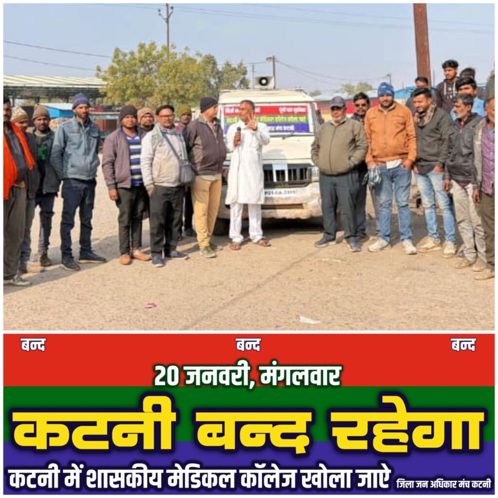 शासकीय मेडिकल कॉलेज की मांग को लेकर 20 को कटनी बंद, पीपीपी मॉडल के खिलाफ जन अधिकार मंच के नेतृत्व में होगा प्रदर्शन