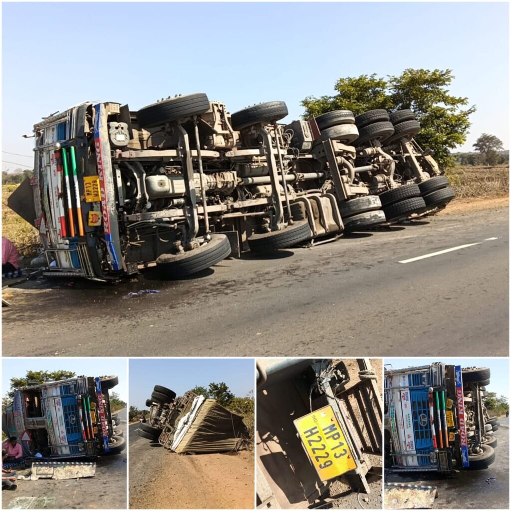 रीठी (कटनी)। कटनी जिले के रीठी थाना क्षेत्र अंतर्गत बड़गांव गांव के पास एक बड़ा सड़क हादसा हो गया। सीमेंट की बोरियों से लदा एक ट्रक अनियंत्रित होकर सड़क किनारे पलट गया, जिससे ट्रक चालक गंभीर रूप से घायल हो गया।