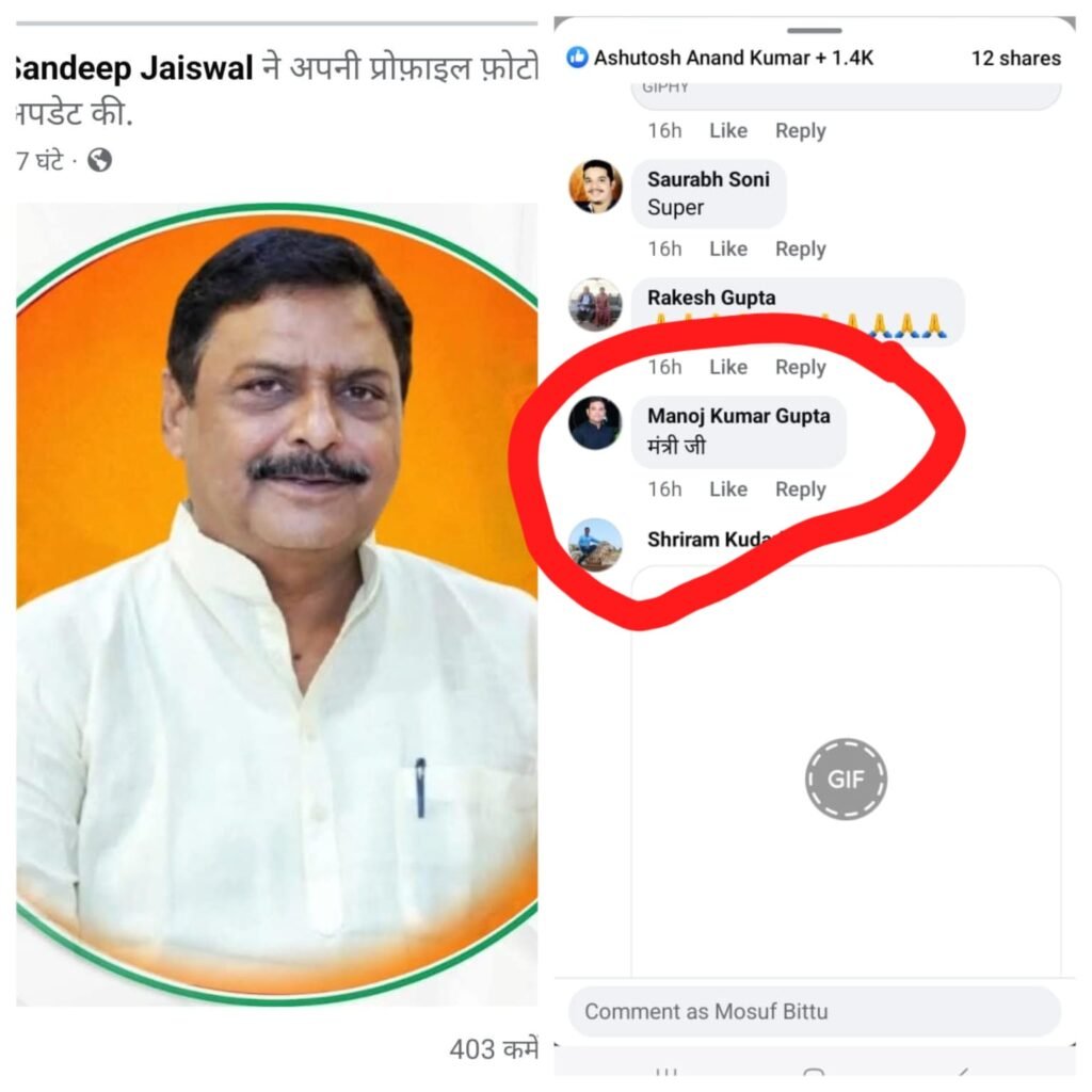 рдЙрдирдХреЗ рдордВрддреНрд░реА рдЬреА рд╡рд╛рд▓реЗ рдХрдореЗрдВрдЯ рдиреЗ рдЗрд╕ рдмрд╛рдд рдХреА рдЪрд░реНрдЪрд╛ рдЫреЗрдбрд╝ рджреА рд╣реИ рдХрд┐ рдРрд╕рд╛ рдХрдореЗрдВрдЯ рдХрд░рдиреЗ рдХреЗ рд▓рд┐рдП рдХреНрдпрд╛ рдХрд╛рдВрдЧреНрд░реЗрд╕ рдиреЗрддрд╛ рдПрдбрд╡реЛрдХреЗрдЯ рдордиреЛрдЬ рдЧреБрдкреНрддрд╛ рдХрд┐рд╕реА рдХрд╛рд░рдг рд╕реЗ рдордЬрдмреВрд░ рдереЗ рдпрд╛ рдлрд┐рд░ рд╡реЗ рд╡рд┐рдзрд╛рдпрдХ рд╕рдВрджреАрдк рдЬрд╛рдпрд╕рд╡рд╛рд▓ рдХреЛ рд╕рдЪрдореБрдЪ рдордВрддреНрд░реА рдмрдирд╛рдирд╛ рдЪрд╛рд╣рддреЗ рд╣реИрдВред рд╡реИрд╕реЗ рдХрд╛рдВрдЧреНрд░реЗрд╕ рдиреЗрддрд╛ рдХреА рдпрд╣ рдЪрд╛рд╣рдд рд╢рд╣рд░ рд╣рд┐рдд рдореЗрдВ рд╣реИред рд░рд╛рд╖реНрдЯреНрд░ рд░рдХреНрд╖рдХ рдиреНрдпреВрдЬрд╝ рдЪреИрдирд▓ рднреА рдЪрд╛рд╣рддрд╛ рд╣реИ рдХрд┐ рд╢рд╣рд░ рдореЗрдВ рдХрдо рд╕реЗ рдХрдо рдПрдХ рд╡рд┐рдзрд╛рдпрдХ рдХреЛ рддреЛ рдордВрддреНрд░реА рдХрд╛ рдкрдж рдорд┐рд▓рдирд╛ рд╣реА рдЪрд╛рд╣рд┐рдПред рдореБрдбрд╝рд╡рд╛рд░рд╛ рд╡рд┐рдзрд╛рдпрдХ рд╕рдВрджреАрдк рдЬрдпрд╕рд╡рд╛рд▓ рдордВрддреНрд░реА рдХреЗ рдкреИрдорд╛рдиреЗ рдкрд░ рд╕рдЯреАрдХ рдЙрддрд░рддреЗ рднреА рд╣реИрдВ рдордЧрд░ рднрд╛рдЬрдкрд╛ рдЫреЛрдбрд╝ рдХрд┐рд╕реА рдХрд╛рдВрдЧреНрд░реЗрд╕ рдиреЗрддрд╛ рдХреЗ рджреНрд╡рд╛рд░рд╛ рдордВрддреНрд░реА рдХрд╛ рддрд╛рдЬ рдЦреБрд▓реЗрдЖрдо рд╕реЛрд╢рд▓ рдореАрдбрд┐рдпрд╛ рдкрд░ рджрд┐рдпрд╛ рдЬрд╛рдирд╛ рдЪрд░реНрдЪрд╛ рдХрд╛ рдХрд╛рд░рдг рддреЛ рдмрдирддрд╛ рд╣реА рд╣реИред